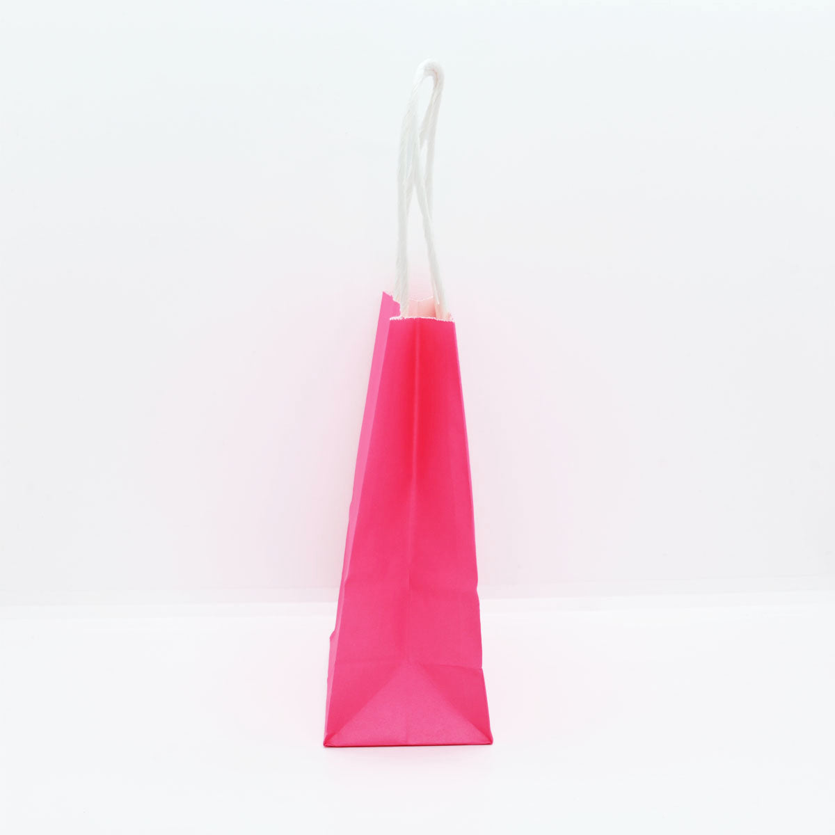 12 Bolsas Colores Kraft 13x21x8cm Boutique Cumpleaños con Asa Color: Rosa Chicle