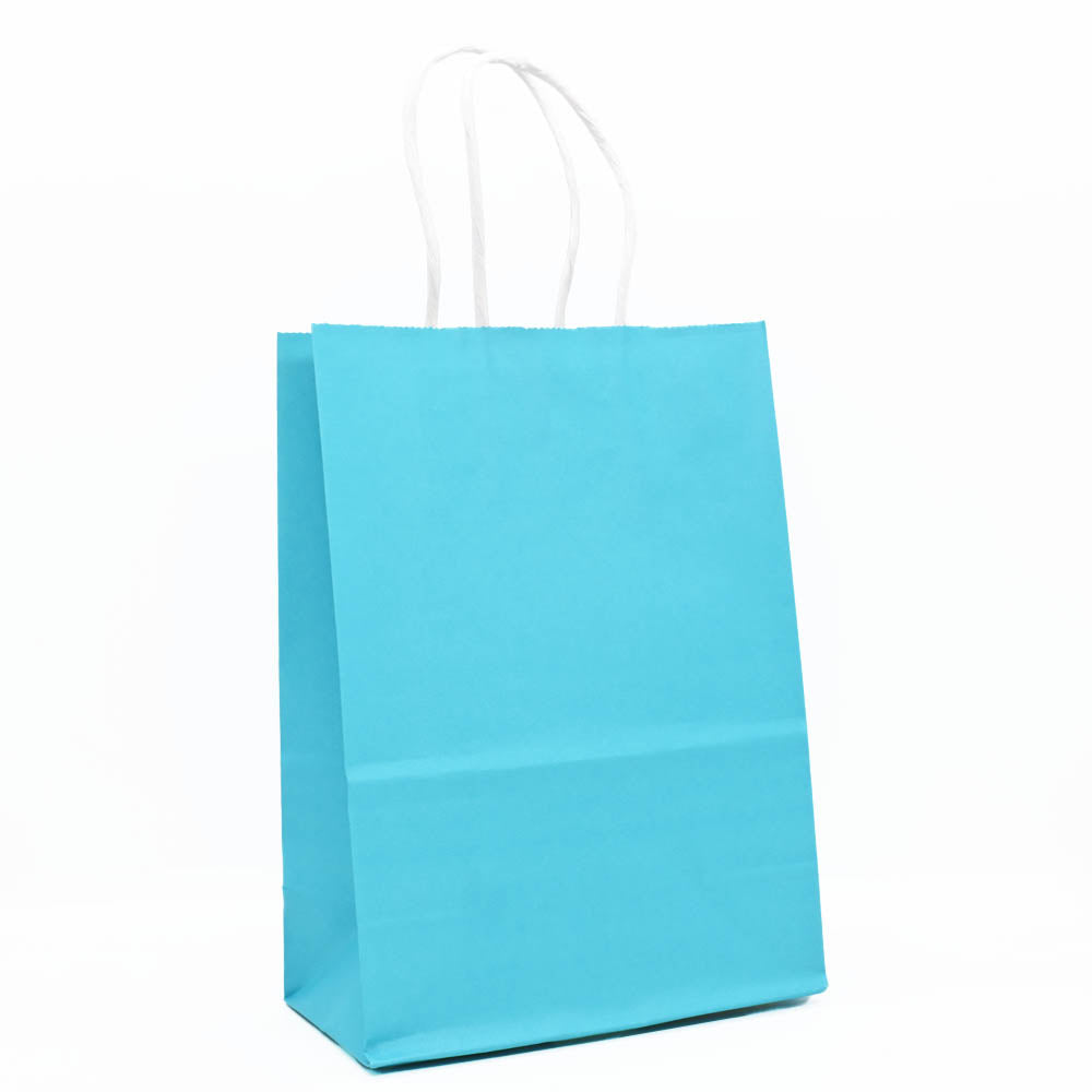 12 Bolsas Colores Kraft 16x21x8cm Boutique Cumpleaños con Asa Con Asa Color: Celeste