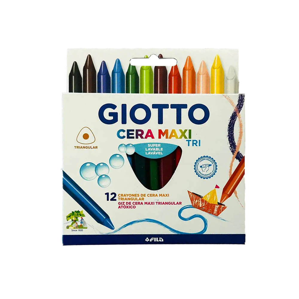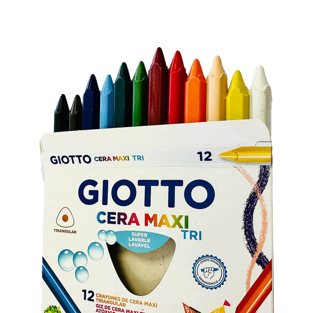 ¡Colorea a lo grande con los crayones Giotto Cera Maxi! 🧡 Este set de 12 colores intensos está diseñado especialmente para manos pequeñas, con un formato triangular que facilita el agarre y fomenta una correcta postura al dibujar.