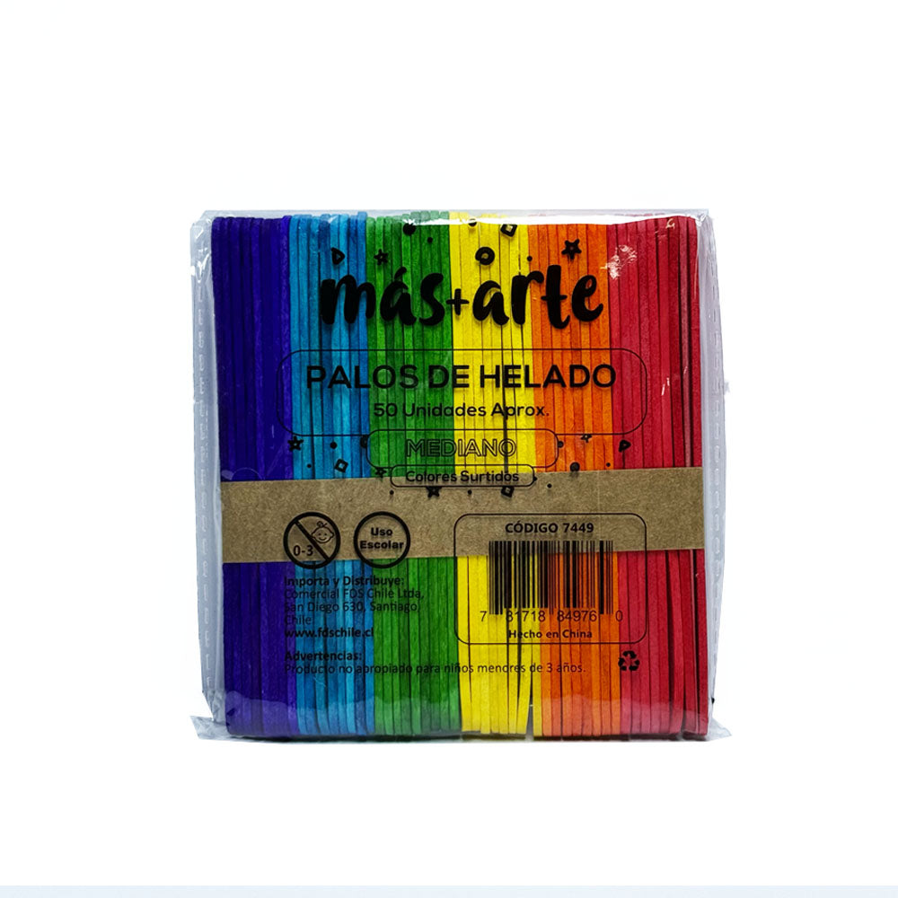 Palos de Helado Color Mas Arte 50 Unidades.