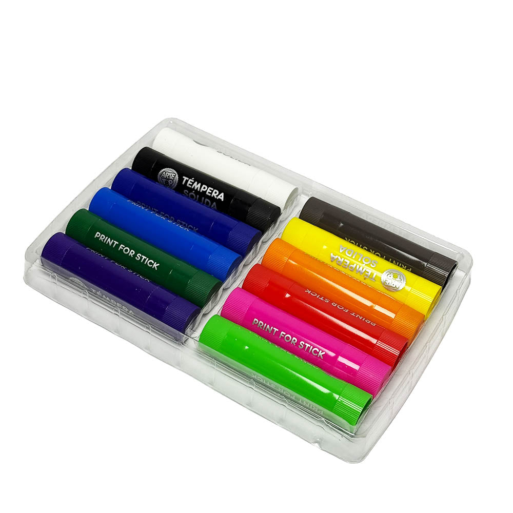 ¡Dale vida a tus ideas con las témperas sólidas Artetop! 🌈 Este práctico set incluye 12 colores vibrantes, ideales para pintar sobre papel, cartulina, cartón y más, sin necesidad de agua ni pinceles. Su formato en barra tipo lápiz labial permite un uso fácil, rápido y sin desorden. ¡Secan en segundos! ⏱️